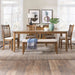 Wow family and friends with the Santa Rosa II rectangular table set. Crafted of rubberwood solids and oak veneers, this set features an antique honey finish and consists of the leg table and four lattice back side chairs.