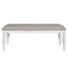 Sit in comfort and style with the Summer House bench. Crafted of poplar and pine solids, this piece features a dove grey finish, grey linen upholstery, nylon chair glides to protect your flooring, and is anchored by beautifully round turned legs. This piece is available in an alternate finish, sure to be great addition in any space.
