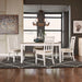 Sitting pretty with the Summerville rectangular table set. Crafted of rubberwood solids with pine veneers, this set features soft whitewash bases with a wire brushed top. The table includes an 18” removable leaf to accommodate guests or a larger family. The chairs have a padded upholstered seat in linen and feature tapered legs with nylon chair glides to protect your flooring. Summerville features the best of cottage design with a casual two-tone finish that works well with any interior.