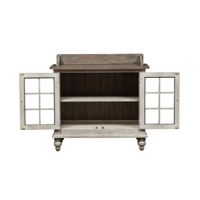 Whitney has the rich character of an English farmhouse appeal. The antique linen and weathered gray finish gives this group an heirloom appeal. The 94 inch trestle table with heavy turned legs on the tables and chairs create an English country charm.